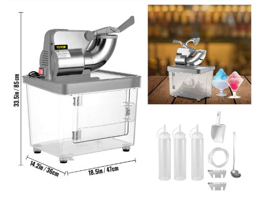 Snow Cone với nhiều hương vị khác nhau: Máy làm đá viên của chúng tôi dành cho mục đích thương mại và gia đình là đối tác lý tưởng của bạn để làm đồ uống ướp lạnh hoặc món tráng miệng có đá. Với vẻ ngoài trang nhã và các chi tiết thân thiện với người dùng, máy hoạt động xuất sắc trong việc làm sinh tố, sữa lắc, đá xay cho hải sản & sashimi,...Bạn có thể áp dụng nó cho các nhà hàng, chuỗi thức ăn nhanh, quán cà phê, quán bar, câu lạc bộ, quầy bán đồ ăn nhanh,....