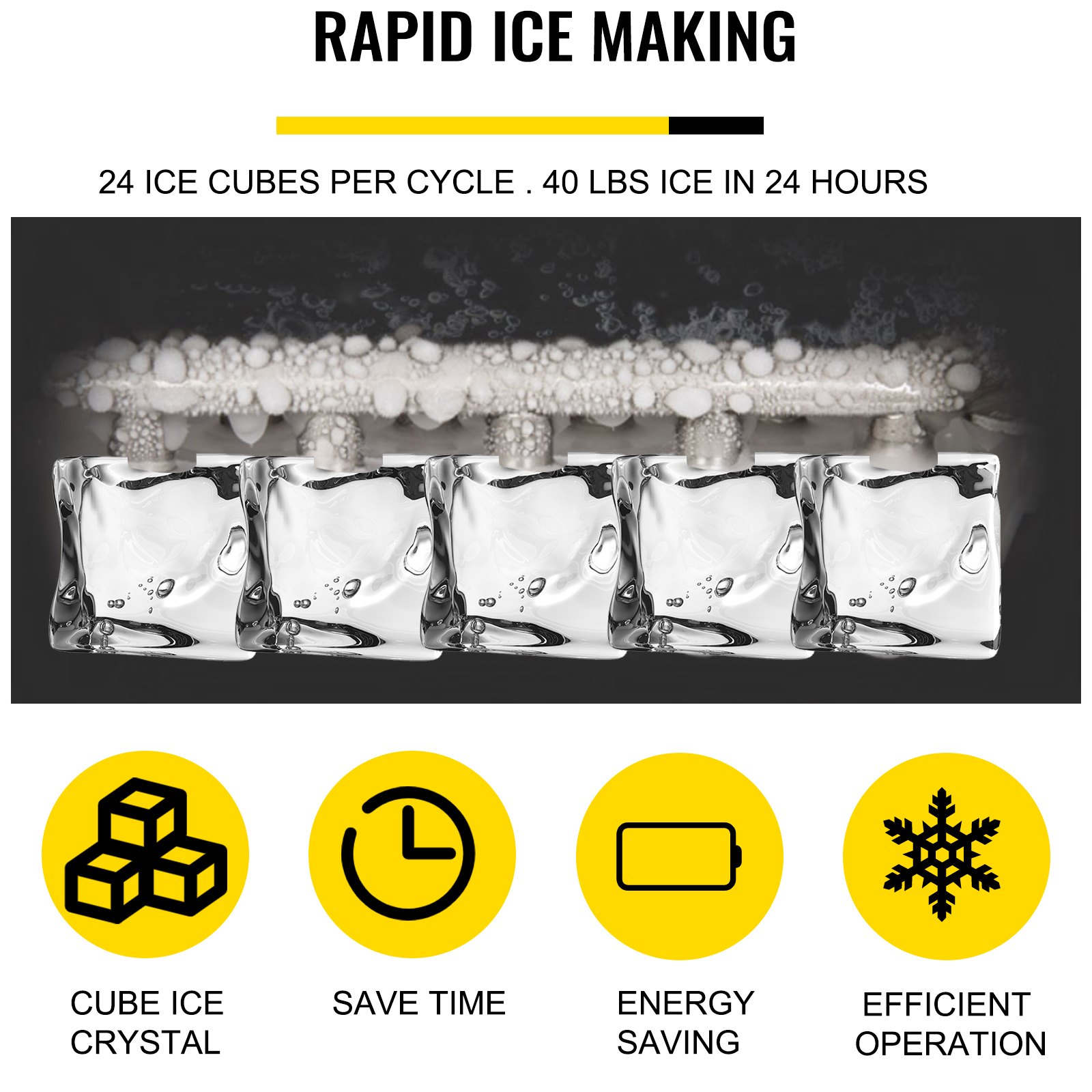 Làm ĐÁ HIỆU QUẢ - Máy làm đá di động này tạo ra những viên đá viên lớn trong 25 phút (tùy thuộc vào nhiệt độ phòng), tương ứng là 18 kg cứ sau 24 giờ. Máy nén yên tĩnh yêu cầu năng lượng thấp để đóng băng. Cửa sổ trong suốt mở rộng cho phép quan sát dễ dàng bất cứ lúc nào.